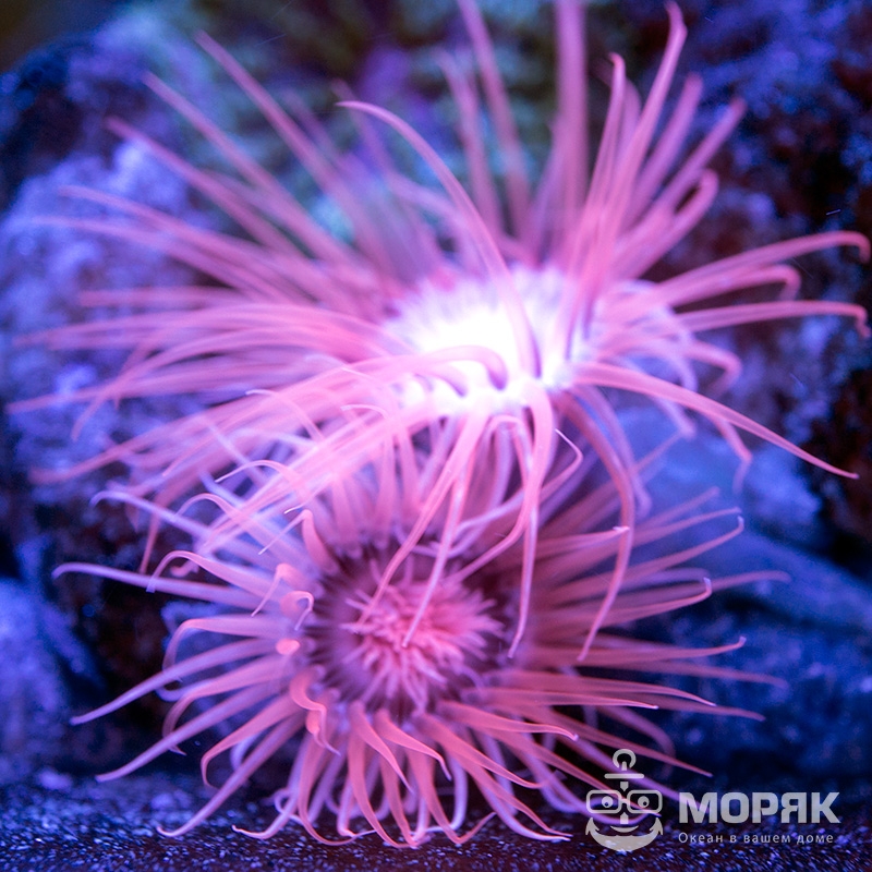 Цериантус с оранжевыми ярко-флуорисцентными полипами и не менее флуорисцентной серединой