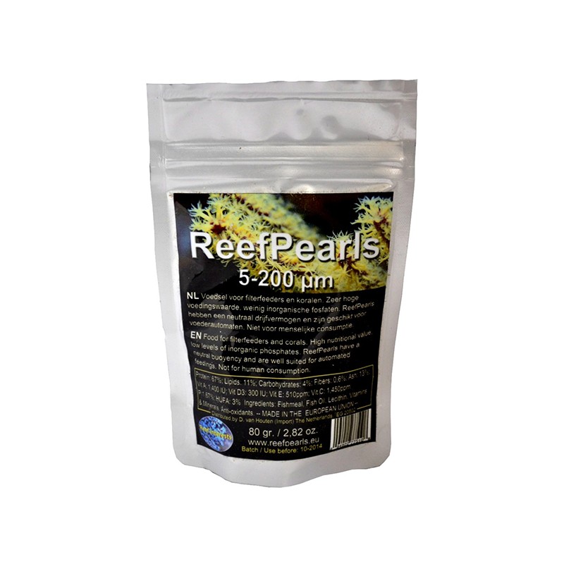 Reefpearls содержит микроинкапсулированные частицы, которые сохраняют стабильность и питательную ценность в толще воды в течение 4-24 часов, благодаря чему, плавая повсюду в аквариуме, они увеличивают продолжительность доступного времени кормления ваших животных. Reefpearls - это смесь гранул различного размера от 5 до 200 микрон, что соответствует натуральным размерам планктона. Их просто вносить в аквариум с помощью автокормушки.