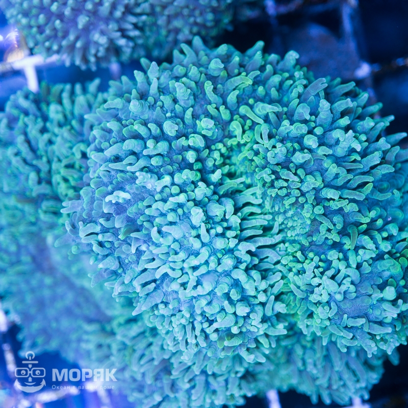 Симпфиллия салатово-желтая флуорисцентная, диаметр коралла около 9 см