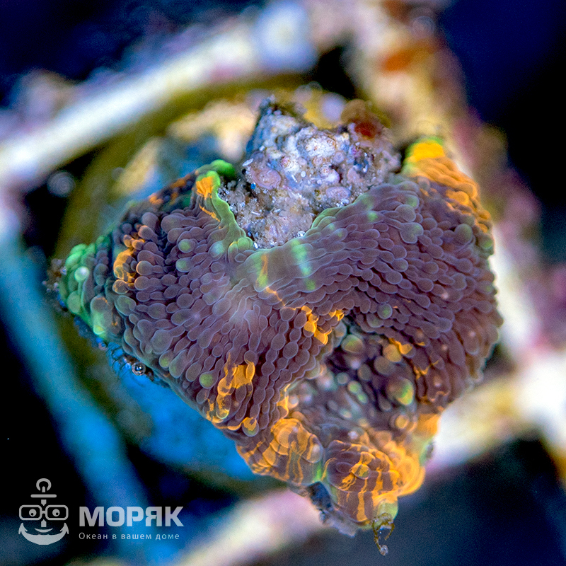 Акантастрея эхината, размер фрага около 2.5 см, очень яркая, флуорисцентна оранжевым!