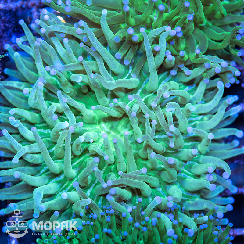 Гелиофунгия салатовая, флуоресцентная. Диаметр коралла около 12 см