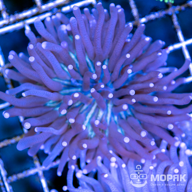 Гелиофунгия светлоголубая с голубымы кончиками полипов. В реальности гораздо ярче цвет, чем на фото. Диаметр коралла 11 см.