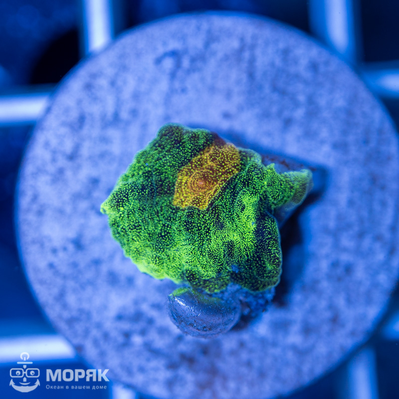 Фраг пектинии (около 2 см в диаметре), ярко флуорисцентны