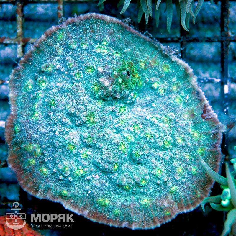 Эхинофиллия (чалис) бирюзовый с салатовыми глазами. Диаметр коралла около 8,5 см.