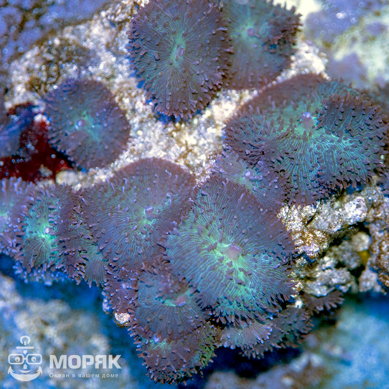 Родактис коричневый с голубым телом, короткополипный. Цена указана за весь камень (около 13 см)