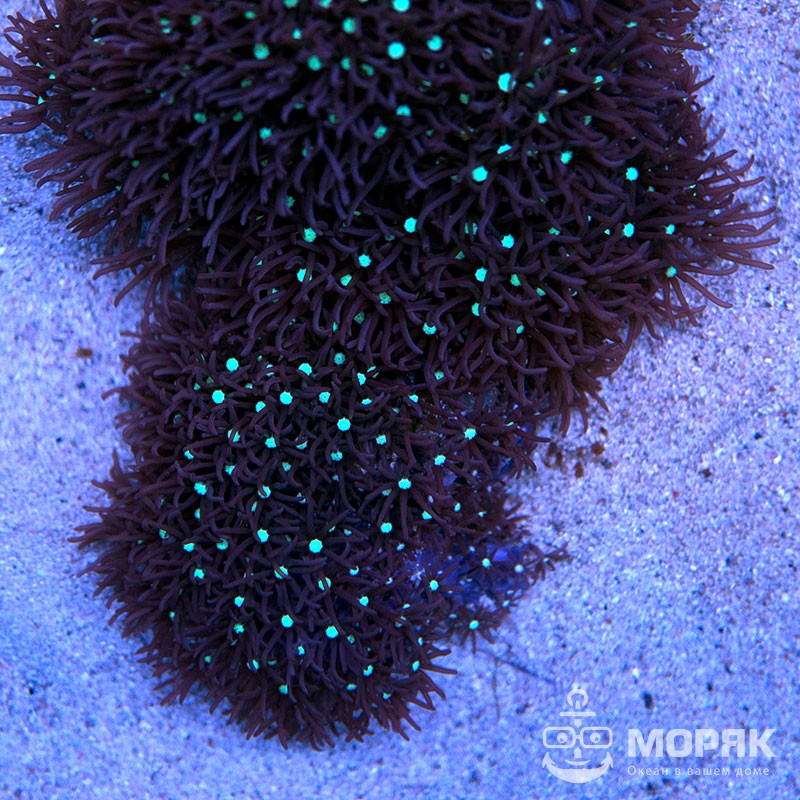 Клавулярия звездчатая коричневая с флуорисцентными белыми точками. Диаметр фрага около 10 см.