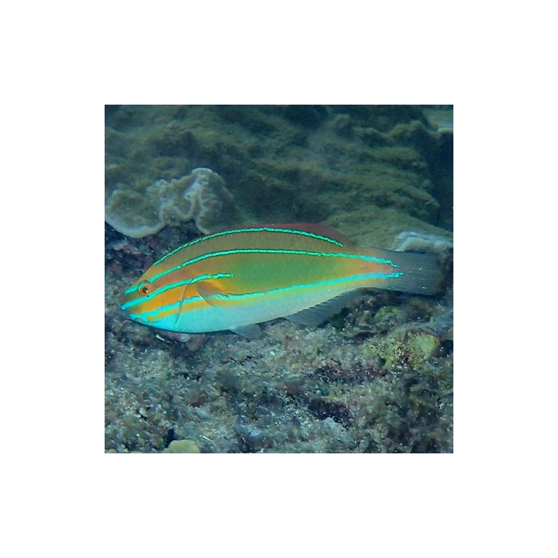 Очень красивый губан, флуоресцентные не только линии, а и само зеленое тело. крупный вид, в неволе вырастает до 16 см. Как и все губаны, является хищником, поэтому предпочитает мясные корма, хотя может питаться и сухими универсальными кормами для всех видов рыб.