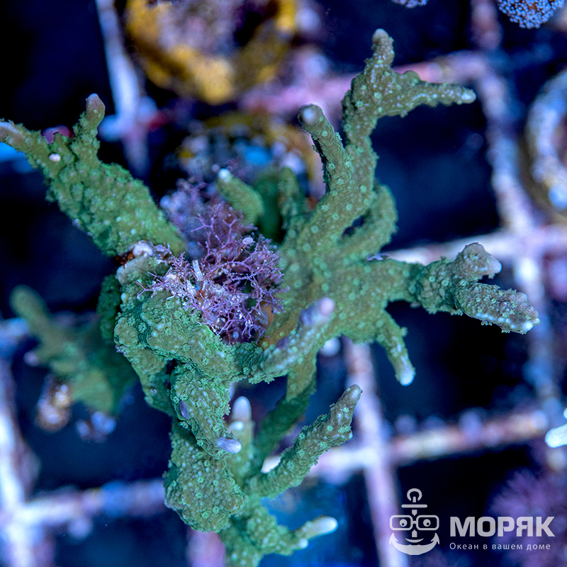 Фраг светло-зеленой монтипоры, очень интересное строение коралла. Высота фрага около 6 см.
