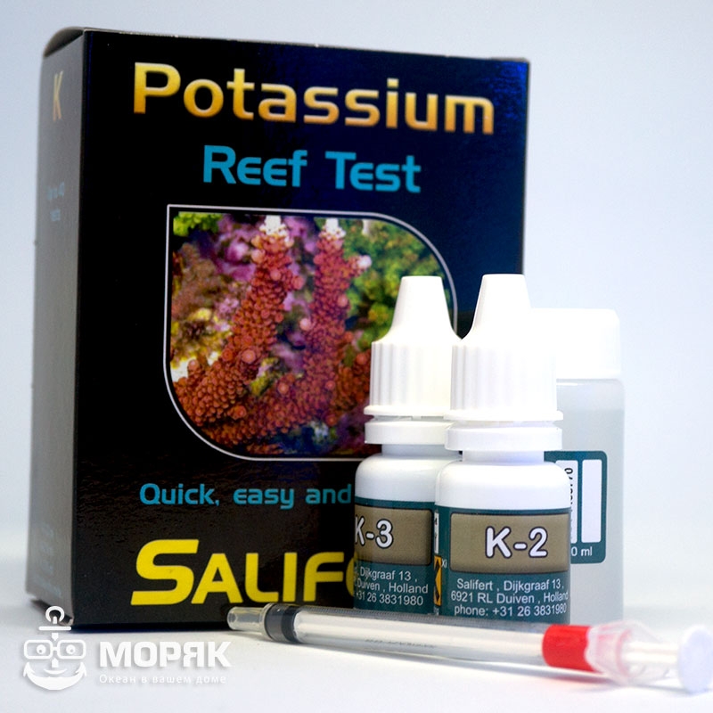Набор для тестирования калия, как и вся линейка профессиональных тестов Salifert, благодаря уникальным химическим компонентам отличается самой высокой точностью, наглядностью цветовых индикаций, позволяющих безошибочно считывать показания с шагом до 15 мг/л. При этомреагенты легко дозируются в процессе тестирования.