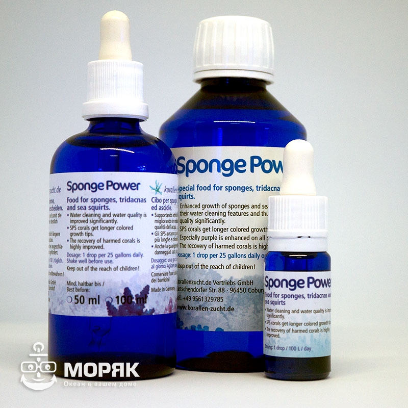 Препарат Sponge Power от компании Кораллен-Зюхт дозируется для роста различных фильтраторов в аквраиуме, таких как губки, тридакны, асцидии и пр. Эти организмы перерабатывают большой объем воды, фильтруя воду через себя и питаясь органическими веществами в ней, что приводит к повышению качества воды в целом.
